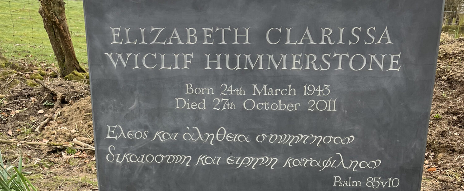 I carve “vernacular ”, that is to say “country letters”, inspired by the C17th and C18th Delabole slate headstones of N.Devon, where I learnt my trade. My headstones look just right in a country churchyard.